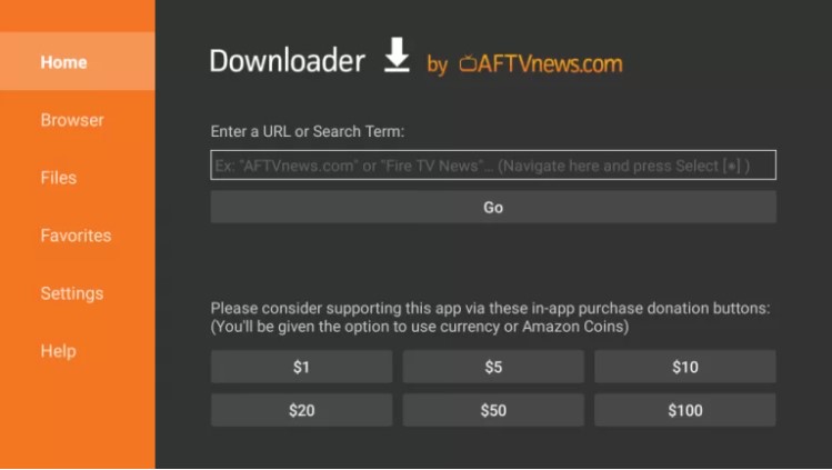 13. Input the URL of the APK File of TiviMate IPTV Player in the URL field.