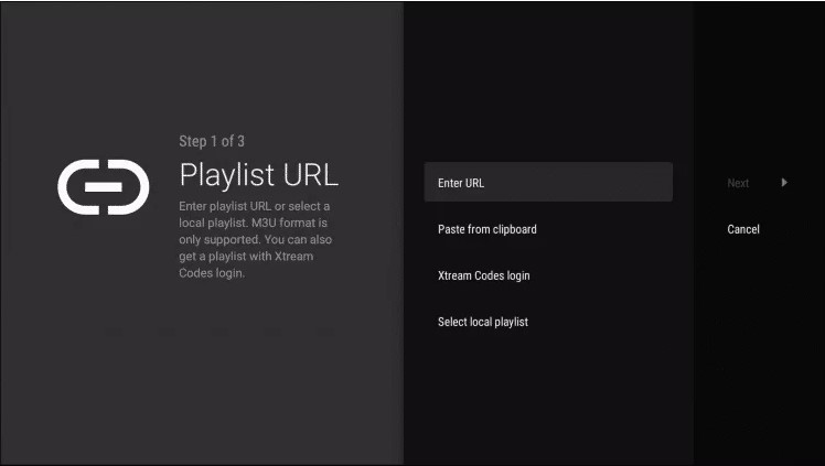- Choose the Enter URL button to input the M3U URL.