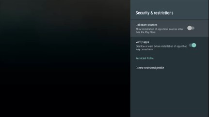 6. Tap Security and Restrictions and enable the option Unknown Sources.